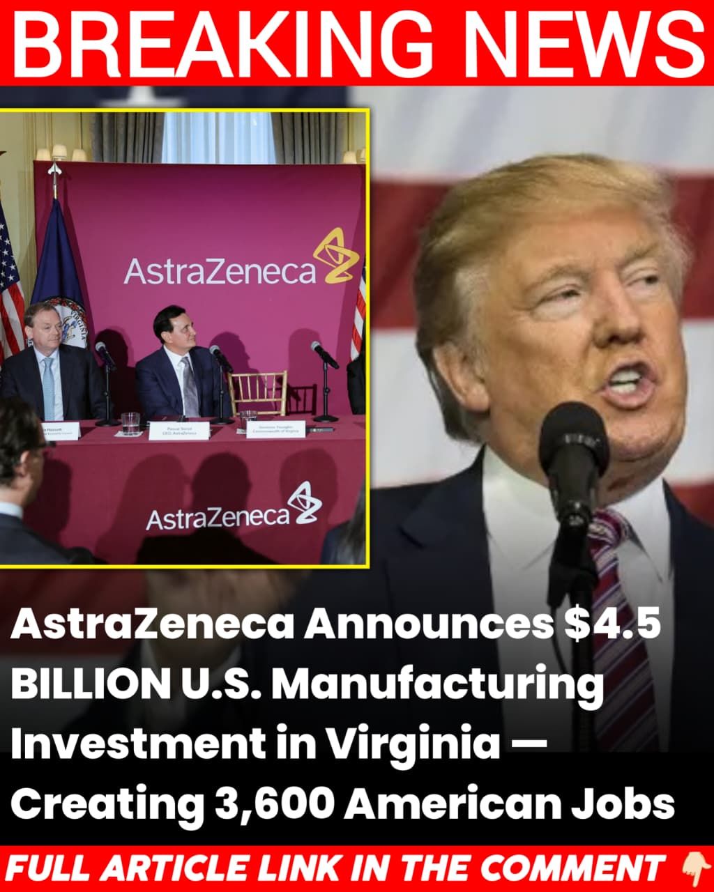 The announcement also carries symbolic weight — a public demonstration that high-end manufacturing is not leaving the United States, but returning stronger than before. As global companies look to diversify operations and secure stable production environments, AstraZeneca’s $4.5 billion bet on Virginia sends a clear message: the future of medicine, innovation, and jobs may be built right here at home.