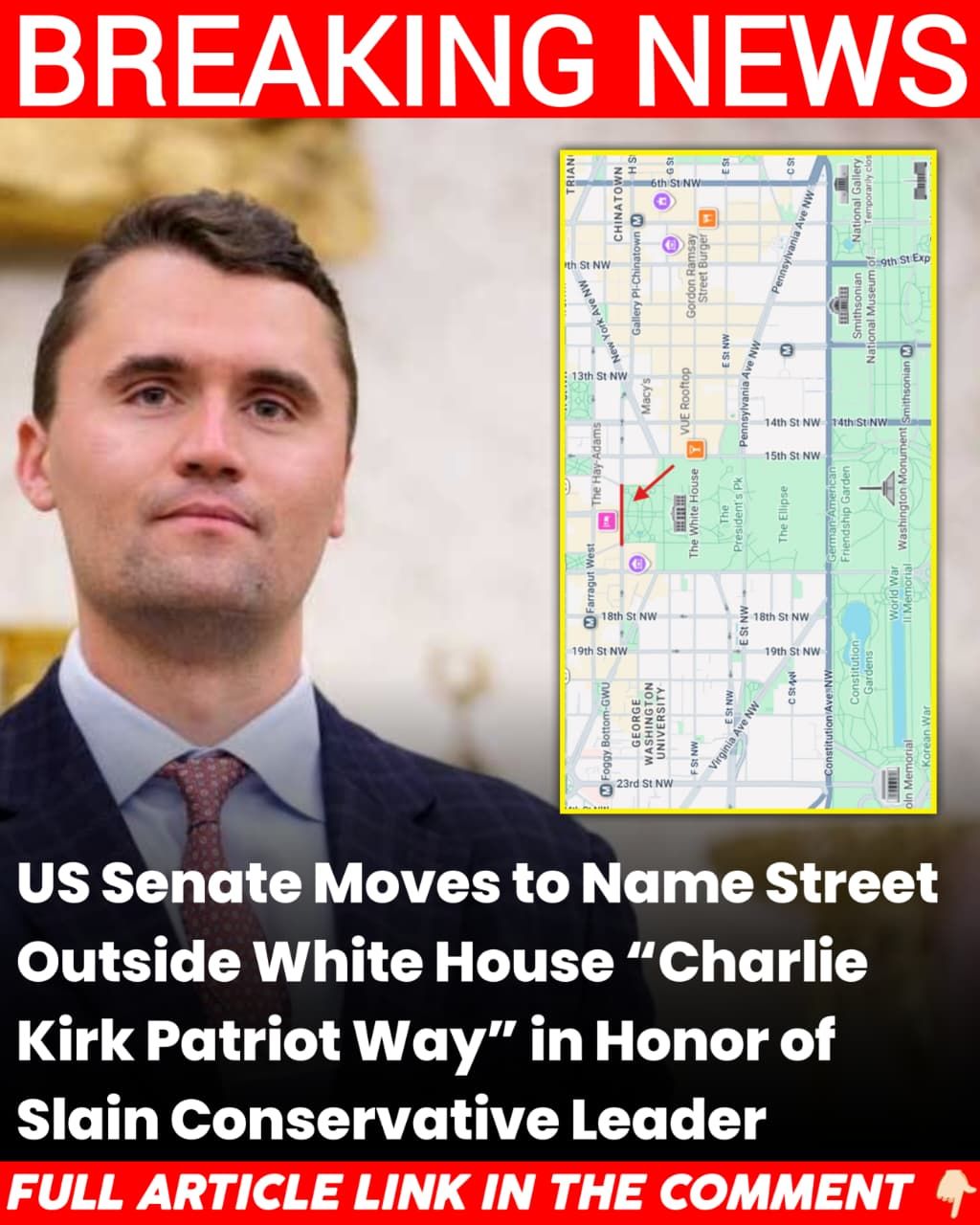 In a powerful gesture of remembrance, the United States Senate is considering bipartisan legislation to rename a section of H Street Northwest near the White House as “Charlie Kirk Patriot Way,” honoring the late Turning Point USA founder whose life was tragically cut short last month. The bill, introduced on October 10, 2025, by Republican Senators Rick Scott, Mike Lee, Marsha Blackburn, Bernie Moreno, and Josh Hawley, aims to permanently recognize Kirk’s legacy as one of America’s most influential young conservative voices.