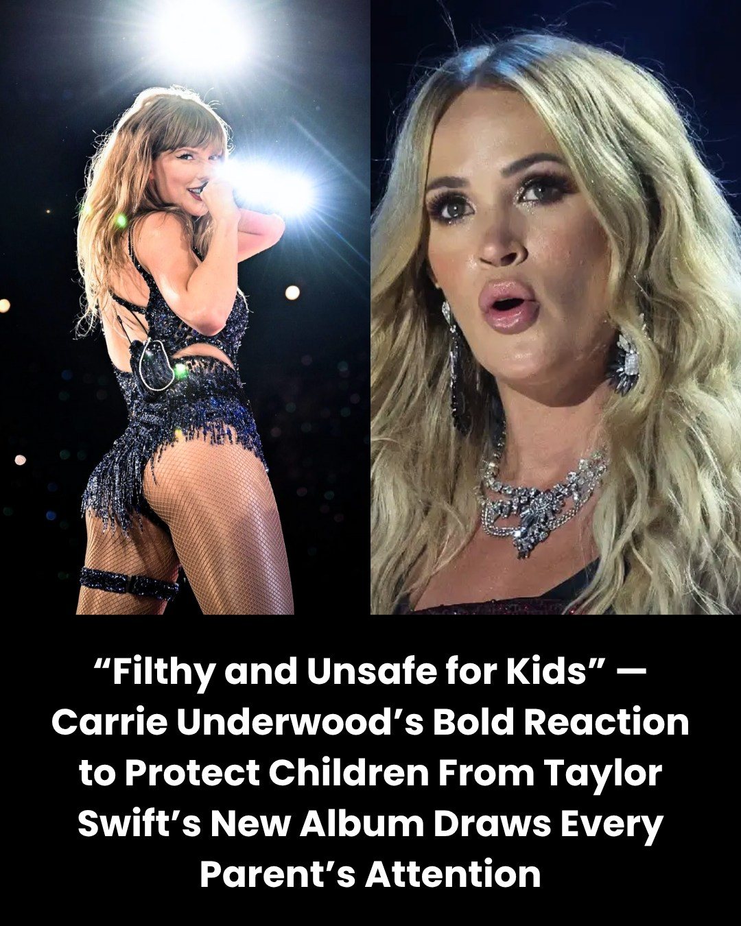 “Filthy and Unsafe for Kids” – Carrie Underwood’s Bold Reaction to Protect Children From Taylor Swift’s New Album Draws Every Parent’s Attention