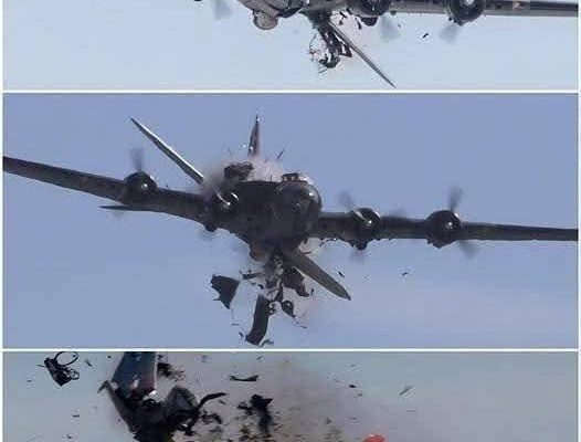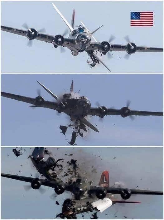 Witness videos posted on social media captured the horrifying moment when a Bell P-63 Kingcobra fighter collided with a Boeing B-17 Flying Fortress bomber in mid-air. The collision sent both aircraft spiraling into the ground in a fiery explosion, killing everyone on board.